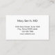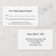 La carte de rendez-vous de ce médecin professionnel est recto verso. La première partie indique "Votre prochaine nomination" et comporte des lignes pour la date et l'heure du rendez-vous. En bas, il y a le texte d'affichage que vous pouvez modifier pour créer un message personnalisé si vous le souhaitez. (Affichage : Veuillez fournir un préavis de 24 heures si vous ne pouvez pas garder votre rendez-vous.) La deuxième partie a un texte d'affichage à remplacer par le nom du médecin (ou le nom de l'exercice) et son adresse, son numéro de téléphone et son site Web. Tout le texte peut être modifié ou supprimé. Le texte est noir. La carte de rappel de rendez-vous est blanche.