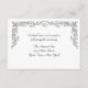 Élégante carte de réception de mariage avec une bordure de défilement floral argenté et un accent de cœur. Pièces assorties disponibles. http://www.zazzle.com/silver_floral_scroll_rsvp_card_invitation-161383181655053745?gl=StarStock&rf=238742838455122129