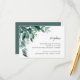 Une élégante carte de réception à motif botanique présente des feuilles et du feuillage d'eucalyptus en aquarelle verte avec une calligraphie encre noire et des lettres majuscules. Personnalisez avec les détails de votre réception de mariage, y compris le calendrier des événements, le lieu et l'adresse. Conçu pour correspondre à notre collection d'invitations Feuillage Abondant.