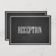 Cette réception de mariage moderne et rétro présente une typographie moderne blanche et une typographie calligraphique sur fond de tableau noir avec des bordures blanches. Cela fait partie d'un ensemble d'invitations de mariage.