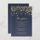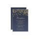 Carte plate de réception de mariage avec confettis à effet doré sur fond gris-bleu
