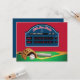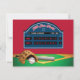 Si vous prévoyez un Bar Mitzvah sur le thème du baseball et que vous avez besoin d'une carte séparée pour les détails de la réception ou de la fête, alors cette invitation amusante "All Star Field" pourrait être exactement ce que vous recherchez. Le recto présente un grand tableau d'affichage bleu et blanc sur fond rouge avec une image verte d'un losange de baseball en dessous. Il y a également un gant de baseball, une balle de baseball rouge et blanche, et une batte posés le long du coin inférieur gauche. Il y a une petite étoile de David bleue sous le nom décoratif rouge et blanc du terrain sur le tableau d'affichage et le nom et les statistiques du Bar Mitzvah sont en blanc et les scores de l'équipe à domicile et des invités pour les neuf manches sont en rouge. Les couleurs du verso sont rouge, blanc et bleu avec une grande silhouette noire d'un joueur de baseball terminant son swing de batte. Les détails de la fête et/ou d'autres textes sont imprimés en blanc. Cette carte est coordonnée avec la collection Bar Mitzvah sur le thème du
