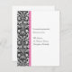 Un motif de papier peint damassé noir et blanc avec des accents roses met en valeur cette carte de réception classique. Facilement personnalisable avec vos propres informations. Disponible en couleurs alternatives avec des produits assortis.