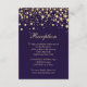 Carte plate de réception de mariage avec confettis à effet doré sur fond violet