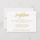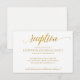 Cette belle carte de réception simple présente un script de calligraphie de luxe en feuille de faux or.