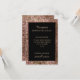 Une carte de réception de mariage élégante et moderne avec des paillettes en or rose et noire. Cette carte de réception fait partie d'un ensemble complet d'invitations de mariage.