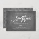 Cette carte de réception élégante présente des polices élégantes et un fond de tableau noir.