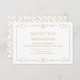 Élégance vintage, cadre orné de motifs tourbillonnants de couleur or sur fond blanc modifiable. Motif damassé avec monogramme au verso, moderne, élégant et chic, parfait pour un mariage vintage, un mariage Art déco tout au long de l'année. Couleur de fond modifiable pour correspondre aux couleurs de votre thème de mariage. Personnalisez votre propre carte de réception pour votre invitation de mariage.