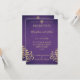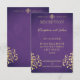 Une carte de réception de mariage élégante avec un motif damassé riche violet et or. Cette invitation fait partie d'un ensemble.