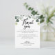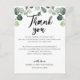 Cet eucalyptus verdoyant vous remercie la carte de réception est parfait pour un mariage élégant. Placez ces cartes à la table de chaque invité à la réception de votre mariage. Personnalisez la carte avec vos noms et un message de remerciement spécial.