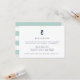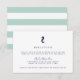 Conçue pour aller avec nos collections de faire-part de mariage nautiques, cette carte d'invitation de réception de mariage chic côtier dans les tons mint et navy présente une petite illustration de licorne de mer en haut avec une écriture élégante en bleu marine et un fond rayé horizontalement en vert mousse et blanc. Ajoutez vos informations de réception comme l'heure, le lieu et l'adresse en utilisant les champs fournis.