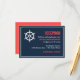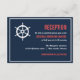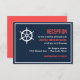Carte de réception bleu marine foncé et corail avec une illustration de gouvernail blanc. Ceci est parfait pour les mariages sur le thème nautique ou les mariages sur le thème de la mer et de l'océan.