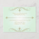 Cette carte de réception de mariage vert menthe et or est le complément idéal de notre invitation de mariage vert et or à tourbillonnement. Cette carte de réception moderne et chic peut être facilement personnalisée en remplissant le modèle fourni. N'oubliez pas non plus la carte de réponse et le timbre-poste coordonnés. com