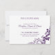 Carte de réception de mariage Exquisite Vines (Prune) : Cette belle carte de réception de mariage présente deux vignes prune et violettes. Vous ne voulez pas de prune ? Vous pouvez le changer pour n'importe quelle couleur que vous aimez, simplement en changeant la couleur de fond.
