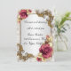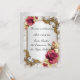 Jolies roses rouges et cadre à motif de feuilles d'or. Cette belle carte de réception est prête à être personnalisée pour votre jour de mariage spécial. Personnalisez la carte en modifiant le texte dans les champs prévus à l'avant et à l'arrière. Vous pouvez changer le style de police, la taille et la couleur, ainsi que le type et le style de papier.