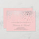 Élégante et moderne carte de réception avec des points de confettis argentés sur fond rose blush. C'est un faux foil argenté - il n'y aura AUCUNE feuille réelle. Cela fait partie d'une suite de mariage. Les articles assortis sont disponibles.