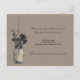 Parfait pour un mariage de style champêtre ou peut-être que vous aimez simplement les pots Mason ! Vieux pot Mason vintage suspendu à un crochet avec des fleurs sauvages champêtres. Une merveilleuse couleur de fond marron chaud avec un dessin noir d'un pot Mason rempli de fleurs sauvages champêtres. Si vous avez des questions sur ce design ou si vous souhaitez une modification de couleur, veuillez m'envoyer un e-mail paula@labellarue.com Vérifiez également les cartes RSVP, RÉCEPTION et PLACEMENT DES INVITÉS pour assortir !