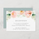 Conçue pour coordonner avec notre collection de mariage Airy Floral, cette carte de réception luxuriante présente un spray de fleurs et de feuilles aquarelles pastel en pêche et vert menthe, surmontant vos détails de réception, heure et adresse.