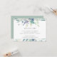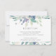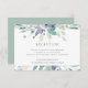 Conçue pour coordonner avec notre collection de mariage Prairie de Montagne, cette élégante carte d'invitation de réception botanique de printemps ou d'été comporte des bordures hautes et basses de fleurs aquarelles éthérées dans des teintes pastel de vert sauge et de violet pourpre. Personnalisez avec les détails de votre réception de mariage, y compris l'heure, le lieu et l'adresse, en lettrage gris moyen classique.