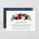 Nos cartes de réception de mariage élégantes et stylées présentent un bouquet de fleurs burgundy, rose blush et bleu marine avec des accents de feuillage vert luxuriant. Personnalisez le design en ajoutant les détails de votre réception de mariage. Conçu pour coordonner avec notre collection de mariage Enchanted Floral.