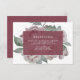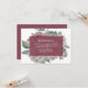 Magnifiquement élégante dans les tons de rose pâle et bordeaux, notre carte d'accueil Mariage de Jardin anglais dispose d'un arrière - plan de fleurs pivoines rose et vert aquarelle avec une simple couverture en marsala portant vos détails de réception, le timing, le lieu, l'adresse et tout autre détail dans le lettrage blanc moderne. Conçu pour coordonner avec notre collection de mariages du jardin anglais à Marsala.