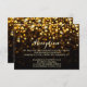 Cette carte de réception de mariage étincelante est sûre d'émerveiller vos invités. Caractéristiques de boules de lumière dorée scintillante qui s'estompent sur un fond noir subtil. Parfait pour un mariage élégant et classe.