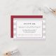 Conçue pour se coordonner avec nos invitations de mariage et d'événement Metro Stripe en rouge canneberge et gris, cette carte d'information de réception simple et chic présente un fond de larges bandes horizontales en gris pâle et blanc, avec les détails de votre réception de mariage dans un mélange de styles de typographie bloc moderne et script traditionnel en noir classique. Une fine bordure de rouge canneberge riche ajoute un contraste de couleur parfait pour les mariages d'hiver ou de saison des fêtes. Ajoutez vos informations clés telles que l'heure de réception, le lieu et le transport ou le stationnement en utilisant les champs fournis.