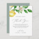 Ce jardin de citrons moderne grâce à la carte de réception est parfait pour un mariage de printemps ou d'été. Le design méditerranéen rustique présente de beaux citrons aquarellés aux fleurs blanches bohème et d'élégants feuilles verts. Placez ces cartes à la table de chaque invité à la réception de votre mariage. Personnalisez la carte avec vos noms et un message de remerciement spécial.