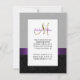 L'élégance sophistiquée est transmise par ce magnifique modèle de carton d'invitation à la réception de mariage. Un motif damassé gris et noir sur fond noir sert de toile de fond à un effet photo de l'initiale en métal doré M et d'un ruban de satin violet et d'une broche en diamant TOUT IMPRIMÉ sur un carton plat. Un moyen parfait d'inviter vos invités à votre réception de mariage. Motif damassé contemporain mais classique avec un design qui vous permet de personnaliser le devant avec vos noms ou le mot "réception" et le verso est libre pour ajouter votre texte d'invitation à la réception de mariage personnalisé. Le carton d'invitation est prévu pour l'initiale de monogramme "M". Pour d'autres lettres, veuillez contacter le concepteur à luxuryweddinginvitations@gmail.com. Conception de la mise en page par Elke