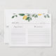Carte de recette de citron pour arrosage à la bouche Botanical Watercolor. Belle et élégante carte de recettes avec des illustrations aquarelle de citrons d'agrumes, fleurs de fleurs blanches délicates et feuillage vert peint à la main. Parfait pour les douches nuptiales et une façon parfaite de garder vos meilleures recettes !