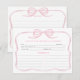 Carte recette décorée d'une jolie bordure et d'un arc en ruban rose, peinte à l'origine en aquarelle par moi.