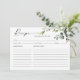 Carte de recette élégante de douche de mariage boh