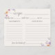 Capturez l'essence de votre histoire d'amour avec notre Fête des mariées de recettes Fleur sauvage, ornée de fleurs sauvages d'aquarelle exquis. Élégantes et intemporelles, ces cartes sont le moyen parfait pour la mariée de collecter des recettes chères de votre plus proche et plus chère. Customisez le modèle pour correspondre à votre thème et ajouter une touche personnelle à chaque détail et joignez-vous à votre invitation à la douche nuptiale. N'oubliez pas d'explorer le reste de notre collection pour coordonner des articles qui élèveront votre douche nuptiale à des hauteurs inoubliables. Achetez maintenant et laissez la beauté des fleurs sauvages inspirer votre célébration!