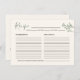 Carte de recette pour la mariée Rustique Fleur sau