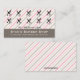 Cette carte de récompenses de fidélité modifiable comporte un arrière - plan rayé rose et taupe avec les informations commerciales en bas. Ci-dessus, des ciseaux et des peignes pour marquer chaque visite. Le texte à l'avant est modifiable, allez-y et changez les détails ainsi que la taille, la couleur et le style de la police. La couleur de la bande derrière le texte au bas de la carte peut également être changée. Crédit artistique : RedPepper. Profitez de votre nouvelle carte de récompenses de fidélité éditable Barber Shop!