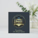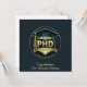 Carte de voeux pour un doctorat réussi avec un casquette de graduation en noir et or avec la possibilité d'ajouter l'année, la discipline de graduation et les salutations personnelles.