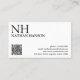 Cartes de réduction d'affaires modernes avec un design noir simple et minimal avec votre monogramme en caractères gras avec un code QR en option. Vous pouvez supprimer le code QR dans l'outil d'édition de conception.