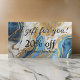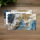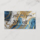 Carte de réduction avec un beau design en marbre bleu, or et blanc qui donne un look luxueux et moderne.