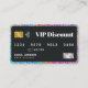 Améliorez le marketing de votre salon avec cette carte de réduction moderne et élégante ! Son design élégant de carte de crédit est doté d'un accent de parties scintillant arc-en-ciel vibrant, ce qui le rend à la fois professionnel et mémorable. Parfait pour offrir des réductions et des promotions exclusives. Customisez le design avec les détails de votre salon et offrez des informations.