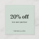 Arrière - plan vert Sage, texte noir Sur le devant : Ajoutez-vous une remise. Retour : Personnalisez et ajoutez votre nom, adresse, numéro de téléphone, courrier, adresse de site, code qr à votre site Web ou compte de médias sociaux.