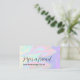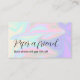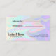 Superbe conception de carte de référence de cils et sourcils avec une texture colorée fausse holographique et une police de calligraphie élégante.