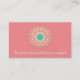 Une carte essentielle pour les professions qui croient en la croissance de leur entreprise par le bouche à oreille. Cette élégante illustration de fleurs de lotus a une belle fusion d'âge vintage, moderne et nouveau. Le médaillon de rosette en fausse feuille d'or Mandala est un arrière - plan de corail rose parfaitement accentué. Centre bleu turquoise.*Veuillez noter que le papier doré et les surfaces en bois sont des images numériques - ce n'est pas le vrai. Un carte de visite artistique et unique idéal pour ceux qui dans les arts de la guérison, le paysage, le design, la beauté, la mode ou la nature biens et services de consommation.