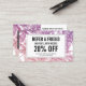 Coordonner avec le modèle Tropical Purple/Pink Parties scintillant Palms Business Card pour 12 h 01. Des silhouettes de fleurs de palmiers créent un décor tropical sur ce modèle moderne et sophistiqué de carte de référence salon. Votre nom ou nom d'entreprise est coiffé d'une simple boîte noire à l'arrière pour une esthétique minimale et propre. Mettez à jour le texte de promotion avec votre récompense de référence désirée. © 1201AM CREATIVE
