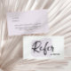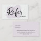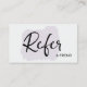 Cette carte de référence élégante de l'entreprise "référez un ami" comprend un script moderne et un éclat d'aquarelle violet chic avec un design minimal.