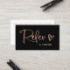 Carte De Référencement Black and Faux Rose Gold Script and Heart|
