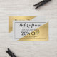 Coordonner avec le modèle de carte de visite Edgy Geometry Faux Gold Foil et Grey Color Block d'ici 12 h 01. Cette conception personnalisable de carte de référence comporte un faux coin trempé de feuille d'or créant une forme intrigante juxtaposée à un arrière - plan gris. Les cartes de recommandation sont idéales pour permettre à vos clients de faire connaître vos services en échange de rabais ou de promotions. Mettez à jour le texte de promotion pour votre propre offre unique. Art et design © 1201AM CREATIVE | www.1201am.com