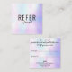 Carte de référence simple, moderne, professionnelle avec holographique, gradient arc-en-ciel, iridescente, arrière - plan perle. Parfait pour les professionnels, y compris les spas, les salons, les maquilleurs, les coiffeurs, les cosmétologistes, les spécialistes de soins de la peau, les esthéticiennes, les détaillants de salons d'ongles et les boutiques. Vous pouvez le personnaliser en ajoutant vos coordonnées et une offre de réduction spéciale au contraire. Conçu par Thisisnotme©