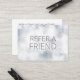 Les cartes de référence de luxe comportent un texte "référez un ami" en deux lignes Ajoutez vos termes de référence et les coordonnées au verso, avec espace pour les noms de vos clients.