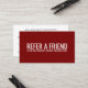 Simple fully customizable referral card template for salons, shops. Minimal elegant design with deep red and white colors, bold fonts.