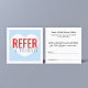Fresh modern fully customizable referral card template for beauty related professionals. Trendy clean design with red/blue/white colors and heart icon.